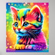 Una ilustración cautivadora de un gatito juguetón bañado en un arcoíris vibrante de colores, contra un fondo estrellado. Esta obra de arte caprichosa es perfecta para agregar un toque de magia a cualquier estilo (Este diseño hecho con IA). ¡Haga su pedido hoy y abrace la alegría de comprar!