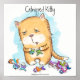 El naranja Tabby Cat con una mirada putrefacta en su cara sostiene un pez juguete lleno de cuchara rota. Muchos otros juguetes rotos rodean sus pies. ¡Parece que se ha ido por la borda en el catnip y lo llamamos Kitty descalzo! Diseño original de Christie Black de Creations from the Heart.