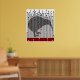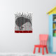Un estilizado poster de un Kiwi. Este pájaro es dibujado en negro, contrastado entre los largos koru verticales que son rojos y negros. Estos coros representan a raupo, la planta de torrente. Raupo fue una planta muy importante para los maoríes en Nueva Zelanda / Aotearoa. El koru es una forma espiral basada en la forma de un nuevo florín de helecho de plata y que simboliza la nueva vida, el crecimiento, la fuerza y la paz.