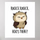 Knock Knock Hoos There Funny Owl Pun presenta un lindo granero con los ojos apenas abiertos diciendo que llamen a los hoos ahí. Gracioso regalo de juego de palabras para la familia y amigos que aman a las lechuzas y los juegos de palabras.