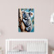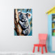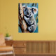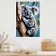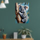 Retrato HD poster en estilo de pintura que representa un ejemplar de un Koala que sigue colgando de un árbol con una cara sonriente y curiosa