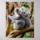 Oso adulto de koala con un niño en la espalda, en un árbol en Australia.