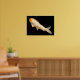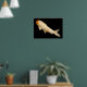 Este poster, sencillo y elegante, cuenta con un naranja de colores delicados y un pescado de koi blanco nadando sobre un fondo negro puro.