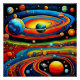 A.I. creó una interpretación surrealista a partir de mi descripción que representa la composición abstracta de líneas, formas y colores en un arreglo cósmico que satisface los sentidos del artista.