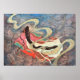 The original painting was meticulously crafted on pure silk (絹) using traditional Sumi ink (墨), vibrant mineral pigments (岩絵具 - Iwa-enogu), and shimmering gold leaf (金箔 - Kin-paku). This high-quality poster print faithfully reproduces that delicate blend of mediums, capturing the luminous depth and vibrant details with exceptional clarity. The soft glow of gold, subtle sheen of the silk, and rich colors are beautifully translated, bringing the ethereal scene to life on a versatile format.