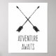 Decora tu hogar, oficina, apartamento, habitación de dormitorio, guardería o incluso salón de clase con este cartel elegante. Este cartel presenta un diseño de flecha tribal popular en negro y blanco con texto debajo que dice "La aventura espera". ¡Este es un diseño único que no encontrarás en muchos otros lugares! Si deseas agregar tu propio texto al diseño, haz clic en el botón "Personalizar" y Zazzle te permitirá hacerlo fácilmente. Este cartel está disponible en varios tipos de papel y en varios tamaños para satisfacer tus necesidades. Los carteles de Zazzle son de excelente calidad, así que sé que estarás satisfecho con tu compra. Compra un marco para el cartel para que se vea aún más bonito cuando lo cuelgues en tu hogar. Por favor, envíame un mensaje si tienes alguna pregunta o inquietud con respecto al diseño de este producto.