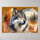 Póster La belleza de la naturaleza del lobo acuarela desa