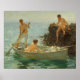Esta es una reproducción de "Rocks at Newport" de 1912 de Henry Scott Tuke. El amor inquebrantable de Tuke era el mar. Tenía sesenta y siete años cuando creó esta obra maestra. Fue miembro de la Real Academia, habiendo nacido en 1858 en York, de donde se mudó a los dieciséis años y entró en la Escuela de Arte de Esclavos. Viajó a Italia seis años después y entre 1881 y 1883 vivió en París, donde estudió bajo la dirección de Jean-Paul Laurens y conoció a John Singer Sargent. Durante este tiempo conoció a Oscar Wilde y a John Addington Symonds. Comenzó su pintura en Cornwall en 1883 y su fama creció gradualmente. En 1914, fue elegido para la Real Academia de Artes por haberse establecido como un artista independiente que podía permitirse trabajar en Francia, Italia y las Indias Occidentales. Tuke murió en Falmouth, Cornwall a los setenta años. Esta obra maestra es un aceite sobre lienzo y mide 20 por 23,98 pulgadas. Está en una colección privada.