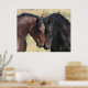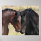 La calma antes de la tormenta. Normalmente hay una señal de cuándo va a pasar algo. Esta es una de las señales. Los dos sementales a menudo juntan cabezas por un momento como si se comunicaran tranquilamente. Puede ser que se molesten unos a otros. Luego vienen los cascos que pisotean el suelo y luego la explosión de ambos mustanos criándose. Mustangs salvajes en el desierto occidental de Utah.