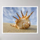 Cierre de un arco de araña sobre la arena de la playa contra el cielo azul con nubes espesas.