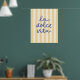 Esta poster de La Dolce Vita incluye texto escrito a mano y un fondo de rayas amarillas que recuerda a los limones de un verano italiano. La Dolce Vita es una frase italiana que significa "la vida es dulce". Si buscas estética y arte mural de moda para el verano, te encantará este papel. Este poster de moda personalizará su comedor o cocina y le dará carácter y calidez. La unión de las paredes con las obras de arte hace que parezca un espacio completo. Colores utilizados: azul, amarillo