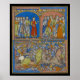 Un ilustracion medieval de La Biblia Cruzada, también conocida como la Biblia Morgan Picture, que data del siglo XIII. El manuscrito gótico francés representa escenas del Antiguo Testamento. En la escena de arriba, a David se le ofrece la mano de Michal, la hija del rey Saul. La escena inferior es David peleando contra los filisteos para ganar la mano de Michal. Gran regalo para alguien interesado en la historia y el arte de la Edad Media.