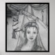 Este dibujo de grafito de Sandra Gale muestra a un guerrero asiático hermoso con una espada de Katana. Los símbolos kanji a lo largo de la hoja simbolizan fuerza, coraje y honor.