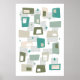 Eleva tu espacio con este poster moderno de la Edad Atómica de mediados del siglo XX, que cuenta con rectángulos funky y estrellas en verde oliva, verde azulado y tostado. Perfecto para los amantes del diseño retro y de los motivos geométricos, este arte mural añade un toque de encanto vintage a cualquier decoración de casa. Ideal para los aficionados de los años 50 y 60.