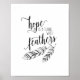 "La esperanza es algo con plumas". - Esta cita motivacional de un poema de Emily Dickinson resuena con inspiración. La caligrafía con letras de mano parece las palabras y los gráficos en negro clásico sobre un fondo blanco y acentuado con el ilustracion digital original de plumas. La mezcla contemporánea de tipografía le da un tema moderno.