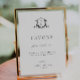 Elegante escudo de monograma boda de estilo vintage adornado botánico en blanco y negro, poster de señas de la boda.