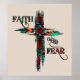 ¡Este es un único Poster de levantamiento de "Uno de bondad"! Cuenta con una gran Cruz del Suroeste en Turquesa, Naranja, Marrón y Negro sobre un fondo tan profundo y las palabras inspiradoras..."¡Fe por miedo!" Diseño De Arte Original Del Artista Kerry Miller.