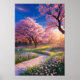 A medida que el sol desciende por el horizonte, se despliega una escena mágica en un parque sakura. El cielo está en llamas con tonos naranjas, rosados y dorados, lo que arroja un cálido resplandor sobre el paisaje. Los majestuosos sakura están altos, con sus delicadas flores brillando en la luz que se desvanece. El parque es un tapiz de verde césped vibrante y una infinidad de flores coloridas, lo que crea una impresionante muestra del esplendor de la naturaleza.
