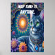 Un majestuoso gato adornado con joyas mira atentamente bajo un cielo estrellado y vibrante. Rodeado de intrincados motivos, flores de colores y un sol ornamental, la escena rebosa de encanto místico y brillantez artística. Gato caprichoso mirando bajo un cielo estrellado a medianoche. La hora de la siesta es en cualquier momento.