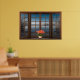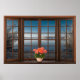Póster La ilusión de la ventana de la bahía con flores en