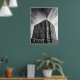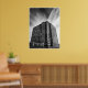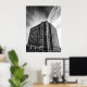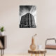 A dramatic black-and-white architectural photograph captures a modern building rising against sweeping clouds in La Jolla, California. The strong lines, towering perspective, and minimalist contrast highlight the beauty of urban design. A striking piece for lovers of architecture, city photography, and modern decor.