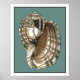 Una de las joyas más finas del océano está en esta imagen. Esta gran concha de concha se encuentra en una obra de arte moderno enmarcada. Una gran imagen de concha con un fondo verde azulado y una concha sepia y blanca. Relájese con esta gran obra de arte natural.