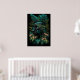 Una majestuosa pantera negra se pega la cabeza en la selva feroz, y sus ojos llamativos revelan majestuosidad y fuerza. La jungla está llena de grandes hojas y flores, como si fuera el dominio de la pantera. A medida que el pantano entra en la selva, se inicia una maravillosa aventura y se explora este bosque misterioso y hermoso.
