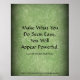 La Ley Del Poder Riquez Hace Que Lo Que Haces Parezca Fácil. Parecerás Poderoso. Poster con un dramático trasfondo de estuco verde: derecho de la riqueza, derecho del poder, derecho de la atracción, derecho de la asunción, motivación, estímulo, éxito, felicitaciones, promoción, nuevos negocios