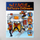 "La Liga de Ingenieros de Software" fue diseñada para la portada de la edición de diciembre de 2007 de "CrossTalk, The Journal of Defense Software Engineering". Diseñé a los personajes para que parecieran salir de un viejo libro de historietas Marvel de los años 60, un homenaje al clásico Stan Lee/Jack Kirby Fantastic Four. El Ingeniero Jefe, el héroe accionado por el músculo con la capa está izando algunos equipos pesados, mientras que su señora ama, Diskette atrapa CDs a la salida de la máquina. La base de datos, algo nerviosa, y de alguna manera ‘beatnik’, se sienta en una codificación terminal (mientras respira por su verdadero amor, Diskette), y el ratón vuela a través del laboratorio, haciendo el clic derecho cuando se necesita".