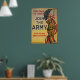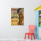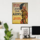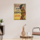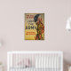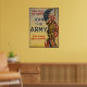 Un poster de reclutamiento de la Primera Guerra Mundial muestra a un soldado parado al lado de una bandera estadounidense y soplando un bugle.