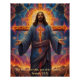 Una imagen impactante y reverente de Jesús en la cruz, irradiando vigas de luz divina de su figura. El fondo está lleno de colores vibrantes y giratorios que simbolizan la esperanza, la redención y la vida eterna. El contraste de la luz radiante con los colores audaces crea una potente imagen que transmite tanto el sacrificio como la gloria del momento. Perfecto para quienes buscan inspirar la fe y la reflexión, esta imagen captura la esencia espiritual de la crucifixión de una manera visualmente cautivadora. Ideal para un poster de temática religiosa que evoca profunda emoción y reverencia.
