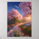 A medida que el sol comienza a descender, lanzando un cálido resplandor dorado sobre el paisaje, un prado cobra vida con una explosión de colores y belleza. Los árboles de sakura, sus delicadas flores en plena floración, saltan la escena como espadas de nubes rosas. Flores vibrantes de varios tonos tapizan el prado, creando un mosaico de la artesanía de la naturaleza. Las colinas verdes se elevan majestuosamente a lo lejos, lo que añade una sensación de profundidad y serenidad al panorama.