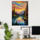 Sumérgete en un paisaje de ensueño donde los elementos de la naturaleza convergen en una sinfonía de maravilla. Un río azul se desliza con gracia a través de un bosque de pinos sereno, lo que refleja la tranquilidad de los alrededores. A lo lejos se encuentran las majestuosas montañas, con su silenciosa tutela que añade un toque de grandeza. Mientras el sol se abre, una acogedora manta de coloridos atardeceres envuelve todo, convirtiendo el paisaje en un impresionante lienzo de tonos vibrantes. Dejen que sus sentidos deambulen por este encantador tableau donde el río, el bosque, las montañas y la puesta de sol se unen en perfecta armonía.