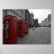 Un raro trío de cajas de teléfonos rojos en la Royal Mile de Edimburgo.