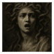 Este impresionante retrato monocromático le da vida a Medusa, la figura infame de la mitología griega, con una evocadora mezcla de horror y humanidad. La composición se centra en su rostro angustiado y expresivo enmarcado por una masa de serpientes en lugar de pelo. La dramática luz claroscuro y las líneas detalladas y giratorias crean una sensación de tensión, intensificando el mítico terror asociado con su mortífera mirada. La boca abierta y los ojos amplios de Medusa transmiten una compleja mezcla de miedo, rabia y desesperación, haciéndola monstruosa y trágicamente humana a la vez. El drenaje clásico y la textura intrincada de las serpientes realzan el realismo y la intensidad, haciendo de esto una poderosa interpretación del legendario gorgón.