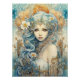 Hermosa acuarela de una misteriosa doncella. Colores suaves y diseño fluido. Un Poster asombroso para decorar cualquier pared. Disponible como descarga digital.