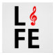 Este diseño combina creativamente texto e imágenes para transmitir el mensaje de que la música es la vida. La música es verdaderamente el lenguaje universal. Si amas la música, tocas un instrumento o conoces a un amante de la música, puedes darles este diseño audaz y positivo como regalo. La palabra LIFE se escribe, con el yo siendo sustituido por el trébol de la palabra, y se le da un acento rojo para diferenciarlo del resto de letras negras, todas mayúsculas.