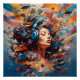 Una pintura digital abstracta de una mujer escuchando música que la rodea.