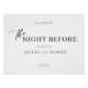 Elegante, sencillo y minimalista, blanco y negro "la noche anterior" ensayo cena de bienvenida signo de poster horizontal con un elegante y moderno guión contemporáneo de tipografía.