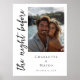 Añada un toque personal y elegante a su cena de ensayo con este bonito cartel de bienvenida "la noche anterior". Este signo editable le permite subir su propia foto como fondo, haciéndola única suya. Perfecto para saludar a los invitados en su evento, esta plantilla es totalmente personalizable. Actualice fácilmente los nombres, la fecha del evento y la foto favorita para que coincidan con su estilo. Sube y muestra tu propia foto como fondo Haz una asombrosa primera impresión con un cartel que refleja tu historia de amor y marca el tono de tu día especial.