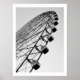 Fotografía en blanco y negro de las elegantes curvas y líneas de una noria.