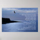 La oración del Poster de San Francisco. Señor, hazme instrumento de tu paz, donde hay odio, sembradme el amor; donde hay daño, perdón; donde hay duda, fe; donde hay desesperación, esperanza; donde hay oscuridad, luz; donde hay tristeza, alegría; oh Divino Maestro, Grant, que no busques tanto consolarme como consolarme; ser entendido como entender; ser amado como amar. Porque es en dar lo que recibimos; es en perdonar que seamos perdonados; y es en morir que nacemos para la vida eterna. Hermosa imagen pacífica de un águila volando sobre el mar.