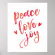 La alegría de la paz inspira a los Navidades a imprimir características de tipografía escrita a mano moderna en acuarela rosa y roja.