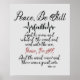 Peace Be Still Posters Inspirador KJV Bible Verse poster con Mark 4.39, "Y se levantó y reprendió el viento y dijo al mar: Paz, quieto. Y el viento cesó y hubo una gran calma". Paz, Be Still título en tipografía caligráfica. Mezcla de estilos caligráficos con "la paz sea aún" en rojo. Tienda de citas cristianas.