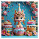Un bonito pony personalizado con un gorra fiesta está rodeado de pasteles de cumpleaños, flores y confeti, lo que crea un ambiente alegre y alegre de celebración para cualquier ocasión alegre o evento infantil.