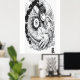 Una ilustración surrealista en blanco y negro que combina el misterio cósmico y la emoción humana. Un joven muchacho se sienta junto a una criatura colosal con un ojo brillante que parece atravesar la tela del espacio. Las texturas detalladas y la composición onírica evocan una sensación de asombro, soledad y conexión entre la humanidad y el universo desconocido. Perfecto para los fanáticos del arte de ciencia ficción, la estética del manga y la narrativa simbólica profunda.