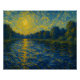 Este trabajo captura la belleza tranquila y dinámica de un río al amanecer, reimaginada a través de la expresiva lente del estilo distintivo de Vincent van Gogh. La escena está viva con movimiento — la corriente suave brilla en luz dorada, mientras el cielo arriba transita de índigo profundo a coral cálido. Las pinceladas de roce en movimiento crean una armonía rítmica entre el agua y el cielo, evocando la magia silenciosa de un nuevo día en desarrollo.