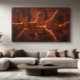 Un paisaje infernal de texturas y colores. Este trabajo captura el poder crudo de la tierra en erupción, con grietas que revelan un fuego en llamas y una paleta intensa de tonos que evocan poder, destrucción y la oscura belleza del submundo.