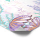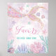 Este adorable cartel de fiesta de sirena presenta hermosos elementos submarinos en rosa, púrpura, verde azulado y dorado.