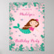 Este poster de la fiesta de cumpleaños presenta un bonito diseño de sirena. Personalizarlo con un nombre. Este poster forma parte de una colección que incluye otros productos para fiestas de cumpleaños coincidentes. Visita la página de la colección en nuestra tienda para ver otros artículos.